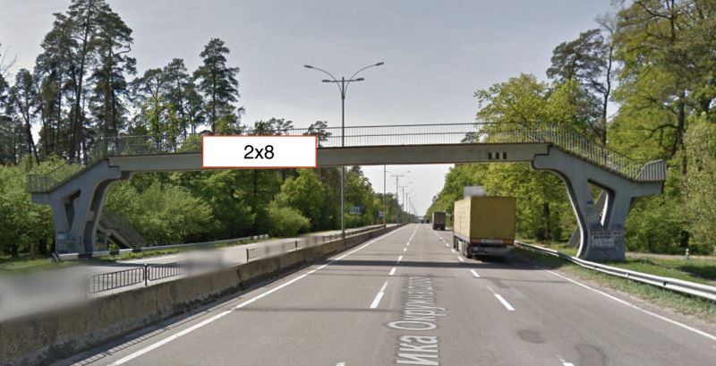 Реклама на мостах по Нова велика кільцева, міст пішохідний на ПК 47+61,0, автомобільна дорога Т1027, напрямок до площі Тараса Шевченка, Киев