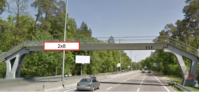 Реклама на мостах по Нова велика кільцева, міст пішохідний на ПК 47+61,0, автомобільна дорога Т1027, напрямок до вул. Міська, Киев
