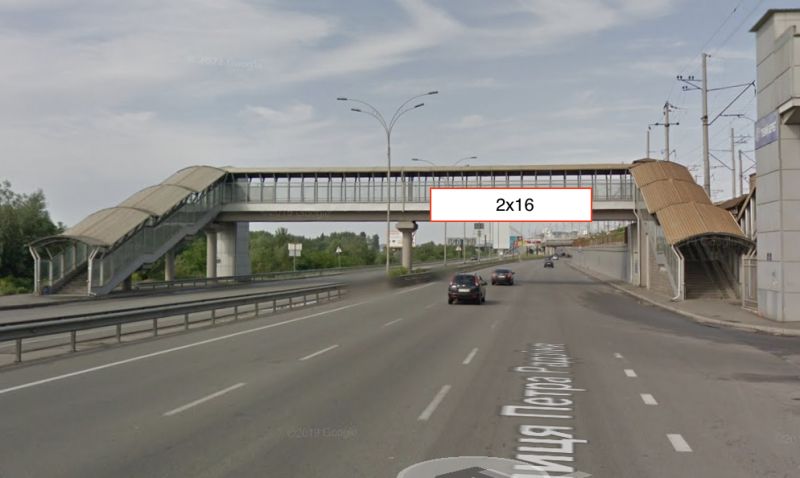 Реклама на мостах по Наддніпрянське шосе, наземний пішохідний перехід біля залізничної станції “Лівий берег”, напрямок переїзду до правого берегу, центру, Киев