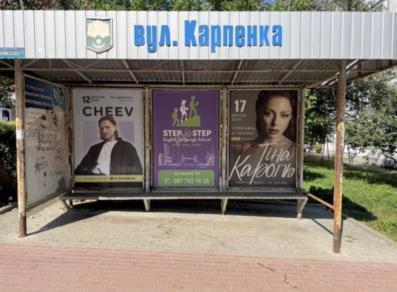 Реклама на остановках по «вул.Карпенка» (від центру) , 4-та площина, Тернополь