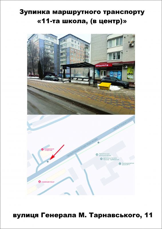 Реклама на остановках по "11-та школа" (в центр), Тернополь