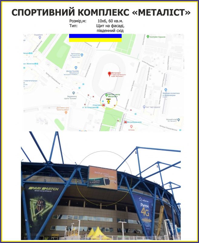 Реклама на фасадах/Брандмауэр по СПОРТИВНИЙ КОМПЛЕКС «МЕТАЛІСТ» південний Схід, Харьков