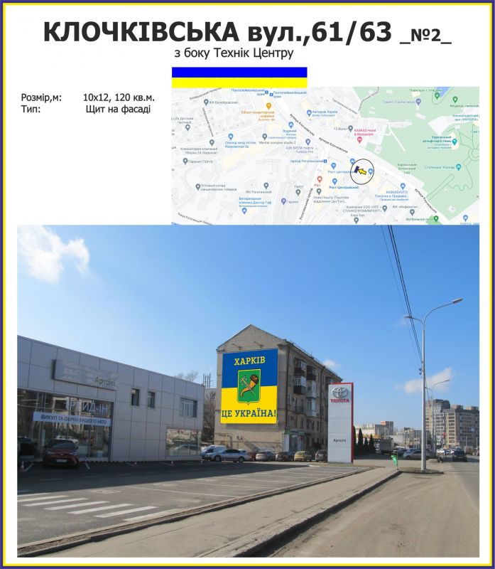 Реклама на фасадах/Брандмауэр по Клочківська вул. 61/63 №2_з боку Технік Центру, Харьков