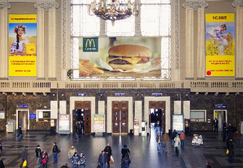 На стене с правой стороны при выходе из главного здания вокзала