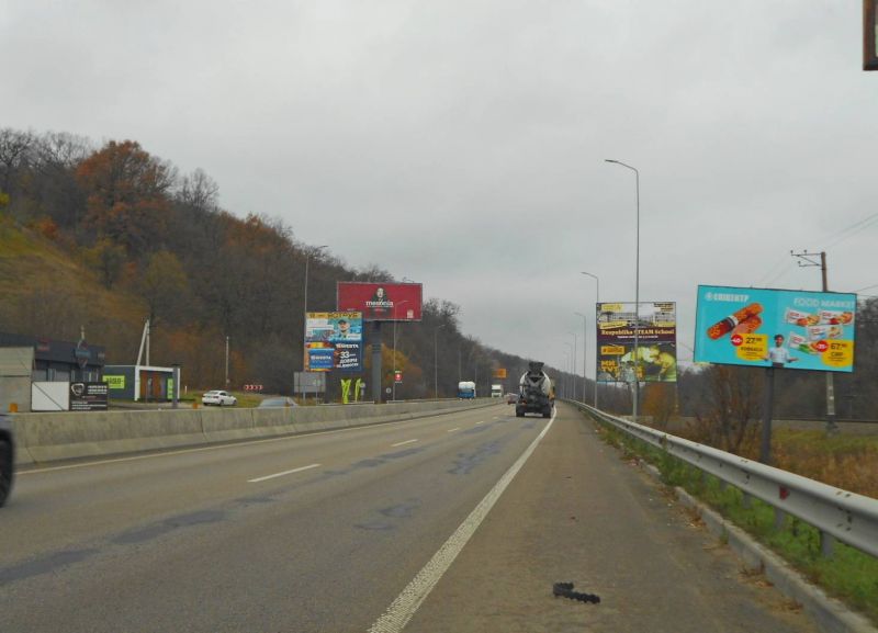 Білборд/Щит Дніпровське шосе, траса Н-01 "Київ-Знам'янка", км 20+400 ліво, через 400м після повороту на с. Лісники, Траси