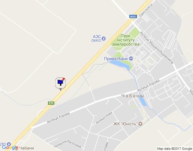 с. Чабани, траса М-05 Київ-Одеса, км 16+090 право, навпроти АЗС UPG, через 710м після АЗС ОККО, за 240м до АЗС Marshal, верх