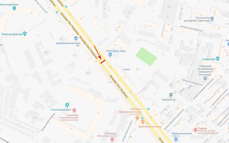 Лесі Українки бульв. 20 бульварна частина, рух в напрямку ст. м. "Печерська"