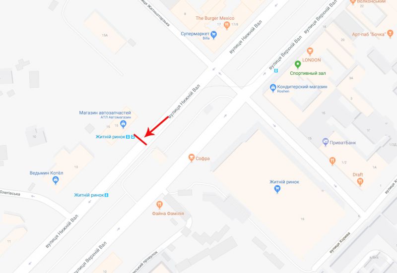 Нижний Вал 15, Житній Ринок, рух в напрямку вул. Глибочицька