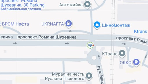 Шухевича Романа просп.(Ватутіна Генерала просп.), 30 (АЗС "ОККО",АЗС "БРСМ-Нафта"), в напрямку перехрестя з Перова вул.
