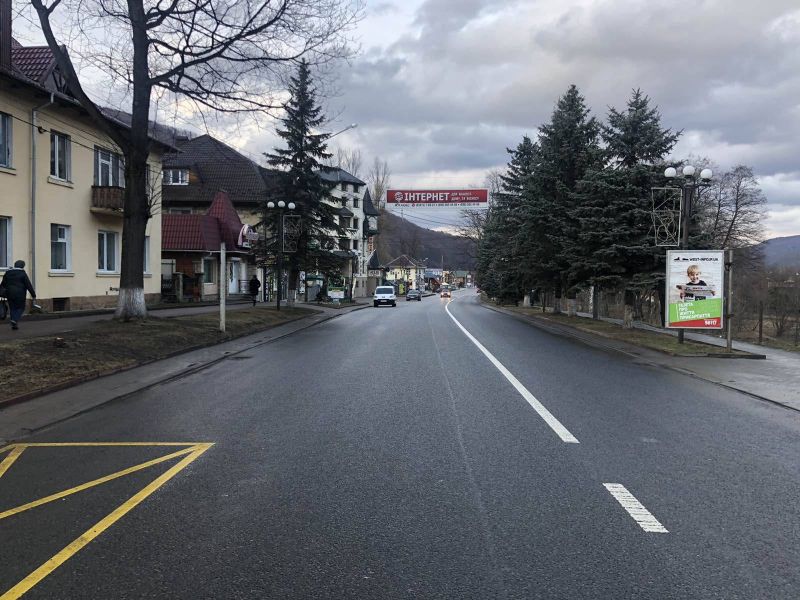 Трол/Розтяжка Траса Н-09 Мукачево-Львів, Свободи, центр міста, супермаркет Апріорі, Золотий вік, напрямок руху на Івано-Франківськ, Яремча