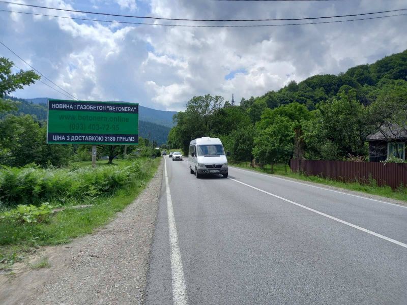 Траса Н-09 Мукачево-Львів, 600 м після АЗС УкрНафта, котедж Марципан, готель Олександрія, напрямок руху на Буковель