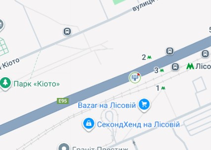 Броварський просп., Ст. м. Лісова (супер-маркет "МегаМаркет", парк Кіото, в напрямку центру міста)