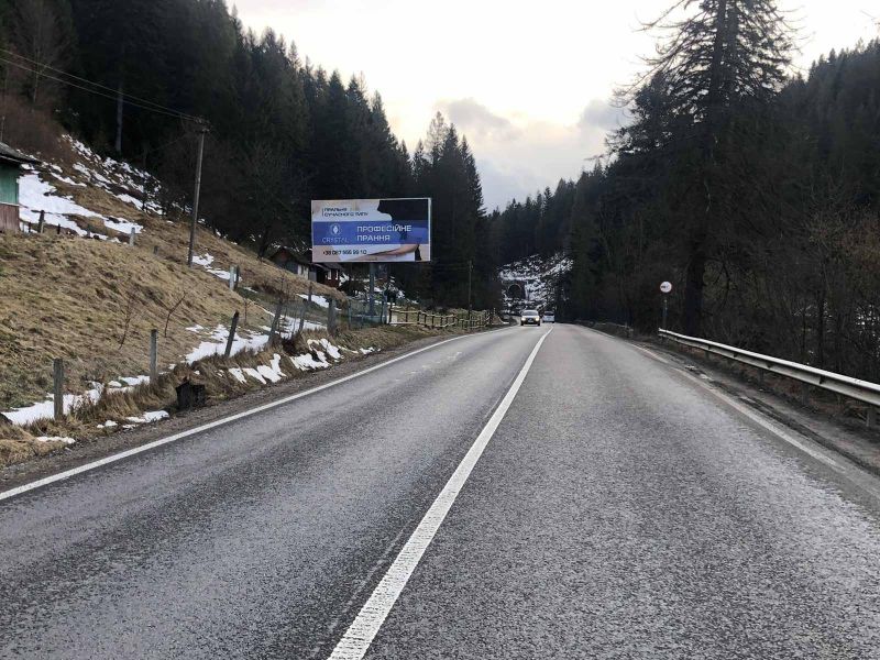 Білборд/Щит Траса Н-09 Мукачево-Львів, в`їзд у селище, готельны комплекси Срыбны Роси, Микулин Хутырець, напрямок руху на Буковель, Микуличин