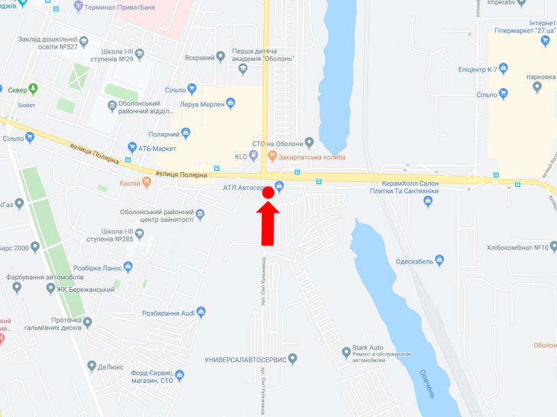 Кульженків сім'ї вул. (колиш. Дегтяренка вул.) - вул. Полярна, в сторону супермаркету "Leroy Merlin", ТЦ "Полярний"