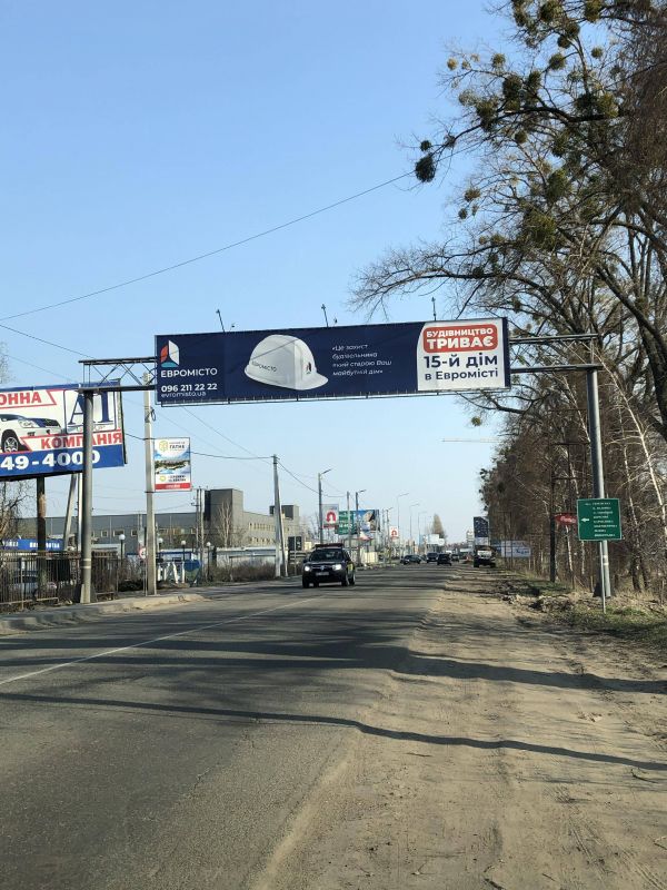 Арка/Реклама на мостах вул. Київська, біля Мегамаркет Гатне , поворот на вул. Теремская, Гатне