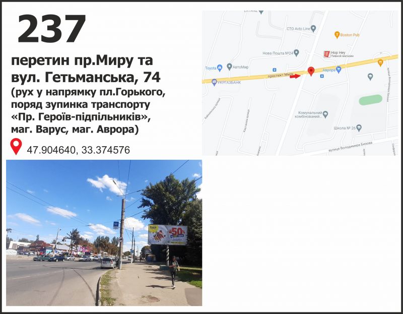 Білборд/Щит пр-т Миру - вул. Іллічівська, рух у напрямку пл. Горького, Кривий Ріг