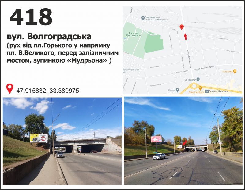 Білборд/Щит вул. Волгоградська, путепровід, рух у напрямку пл.Артема, Кривий Ріг
