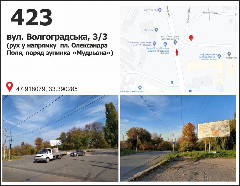 Білборд/Щит вул. Волгоградська, 3 (строймаркет "КБІ"), рух у напрямку пл. Артема, Кривий Ріг