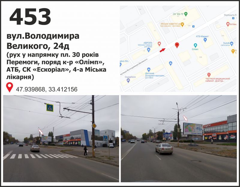 Білборд/Щит вул. Володимира Великого (Мелешкіна), 24 б (КТ "Олімп"), рух у напрямку 173 кв., Кривий Ріг