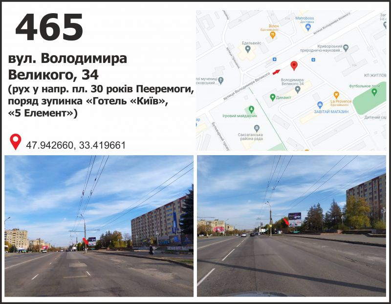 Білборд/Щит вул. Володимира Великого (Мелешкіна), 34, рух у напрямку пл. 30 років Перемоги, Кривий Ріг