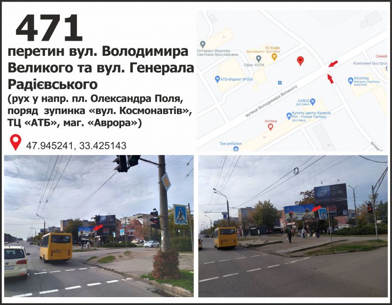Білборд/Щит вул. Володимира Великого (Мелешкіна), 59 - ул. Кустанайская ("Дом Мод"), рух у напрямку пл. Артема, Кривий Ріг