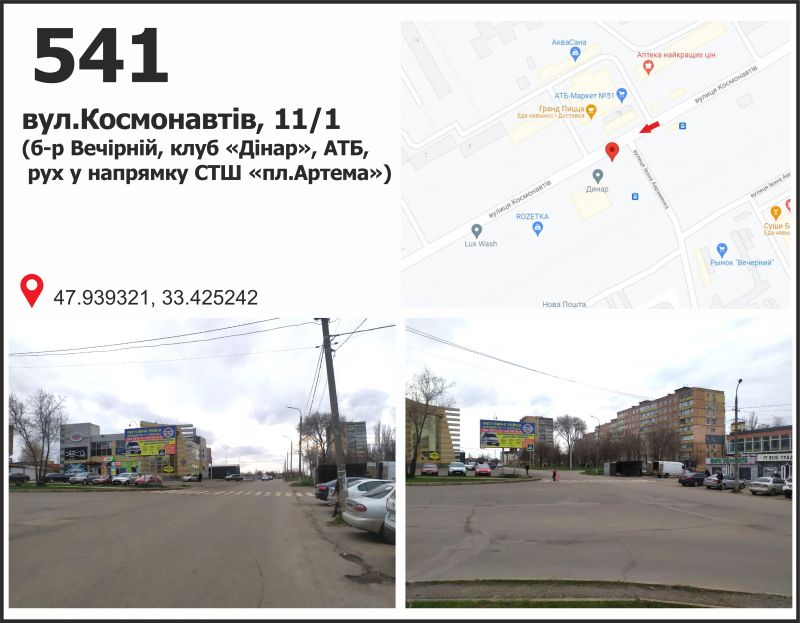 Білборд/Щит вул. Космонавтів, 11-1 - б-р Вечірній (РК "Динар"), Кривий Ріг