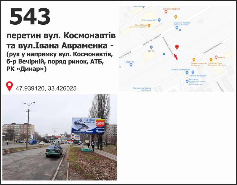 Білборд/Щит вул. Корнійчука, 11 - б-р Вечірній (ринок), Кривий Ріг