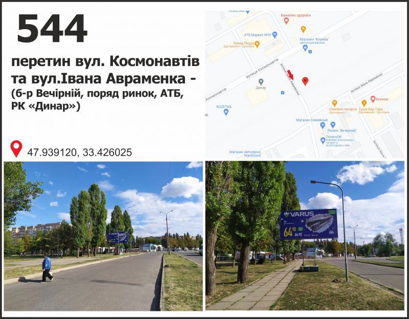 Білборд/Щит вул. Корнійчука, 11 - б-р Вечірній (ринок), Кривий Ріг