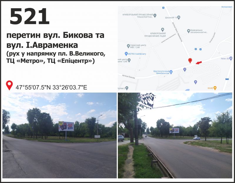 Білборд/Щит вул. Бикова - вул. Корнійчука, рух у напрямку пл. Артема, Кривий Ріг