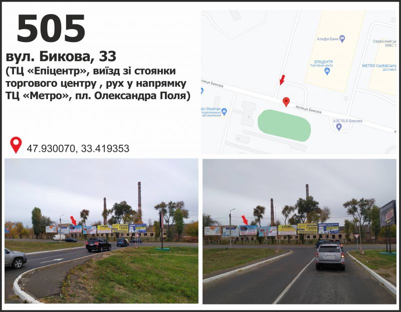 Білборд/Щит вул. Бикова, 33 (ТЦ "Епіцентр"),виїзд зі стоянки, Кривий Ріг