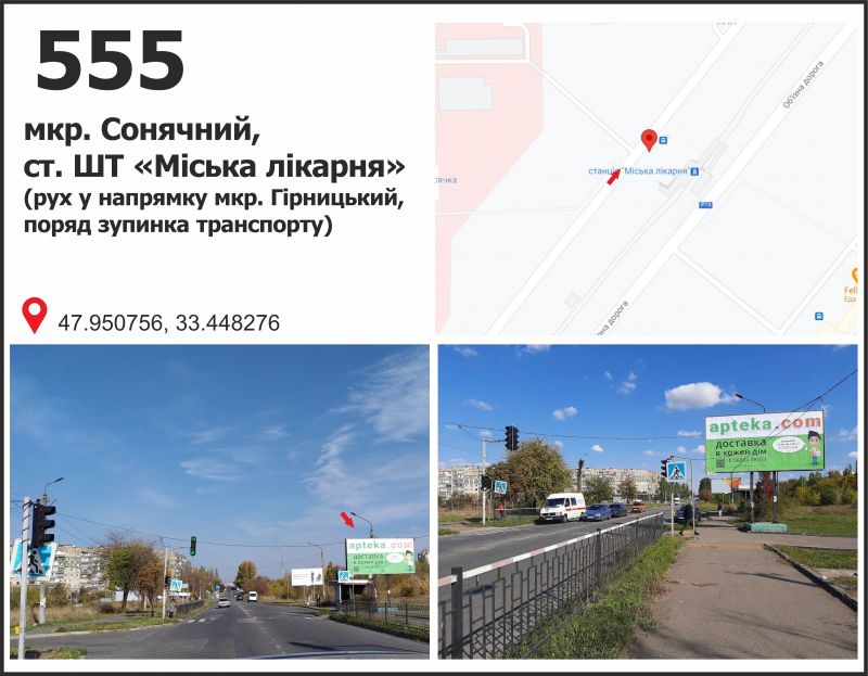 Білборд/Щит мкр. Сонячний, 2 (ст. ШТ 'Міська лікарня'), рух у напрямку мкр. Гірницький, Кривий Ріг