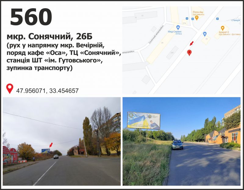 Білборд/Щит мкр. Сонячний, 26 (ст. ШТ "Октябрьська", ТЦ "Сонячний"), рух у напрямку вул. Космонавтів, Кривий Ріг