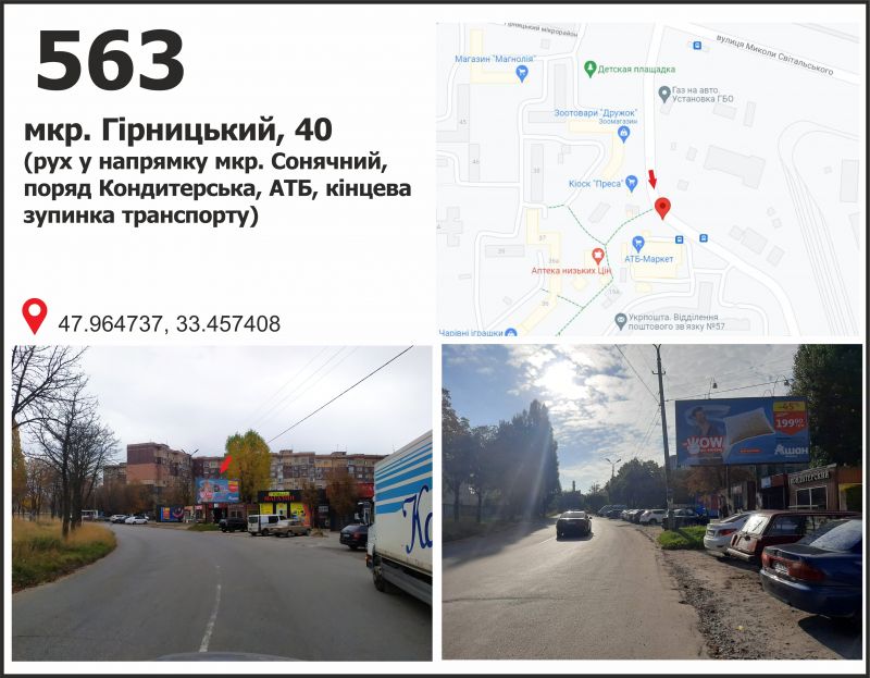 Білборд/Щит мкр. Гірницький, 22а (ТЦ "АТБ", кінцева зуп. МТС), рух в напрямку мкр. Сонячний, Кривий Ріг