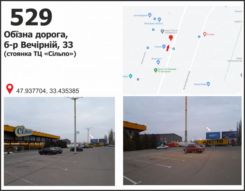 Білборд/Щит б-р Вечірній, 33 (стоянка перед ТЦ "Сильпо"), Кривий Ріг