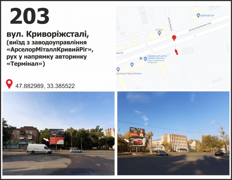 Білборд/Щит вул. Криворіжсталі (Орджоникидзе) виїзд з "АрселорМіттал Кривий Ріг", Кривий Ріг