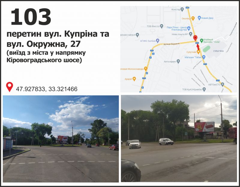 Білборд/Щит вул. Купріна, 130, в`їзд в місто зі сторони мкр. Макулан, Карачуни, Кривий Ріг
