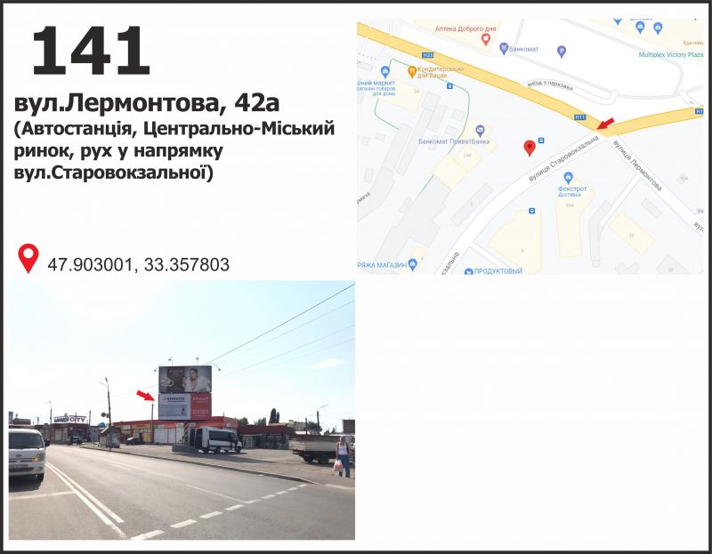 Білборд/Щит вул. Лермонтова, 42а (Автостанція, Центрально-Міськийй ринок), рух у напрямку пл. Визволення, Кривий Ріг