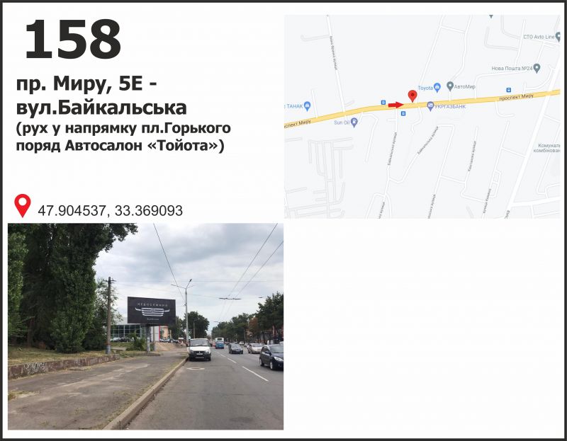 Білборд/Щит пр. Миру, 5е - вул. Байкальська ("TOYOTA центр"), рух у напрямку пл. Горького, Кривий Ріг