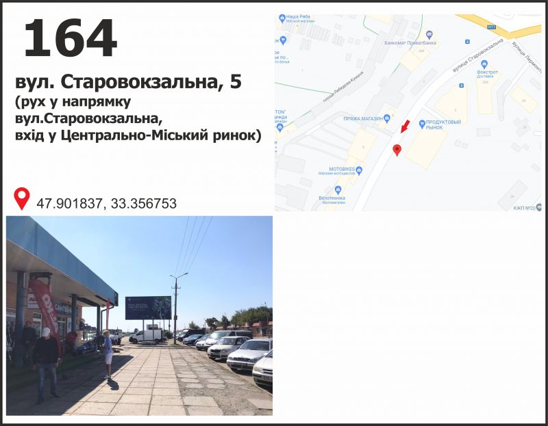 Білборд/Щит вул. Старовокзальна (Урицкого), 5 (вхід в Центрально - Міський рынок), рух у напрямку вул. Святомиколаївської (Ленина), Кривий Ріг