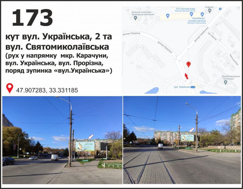 Білборд/Щит вул. Українська, 2 - вул. Святомиколаївська (Ленина), рух у напрямку мкр. Карачуни, Кривий Ріг