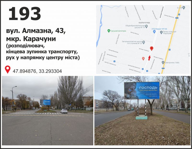 Білборд/Щит вул. Алмазна (Погребняка), 43, мкр. Карачуни (кінцева зупинка МТС), Кривий Ріг
