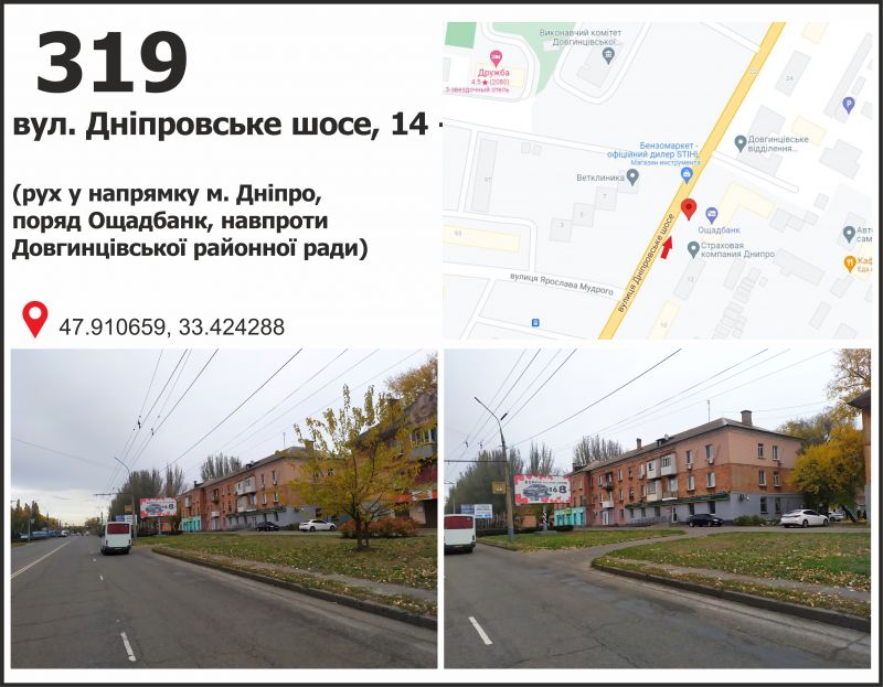 Білборд/Щит вул. Дніпровське шосе (Днепропетровское шоссе), 14, дв-е к развилке на Днепр, Кривий Ріг