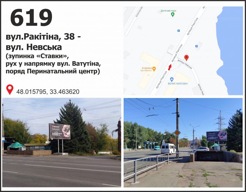 Білборд/Щит ул. Ракитина (Ногина), 38 - ул. Невская (ост. "Пруды"), дв-е к ул. Ватутина, Кривий Ріг