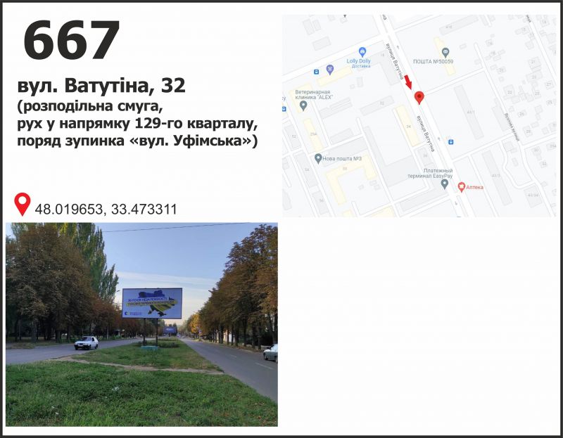 Білборд/Щит вул. Ватутіна, 34, разделитель, дв-е к 129 кв., Кривий Ріг