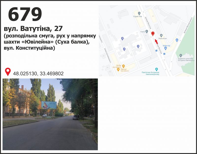 Білборд/Щит вул. Ватутіна, 27, разделитель ("Приват Банк", шахтауправление), дв-е к ст. Роковатая, Кривий Ріг