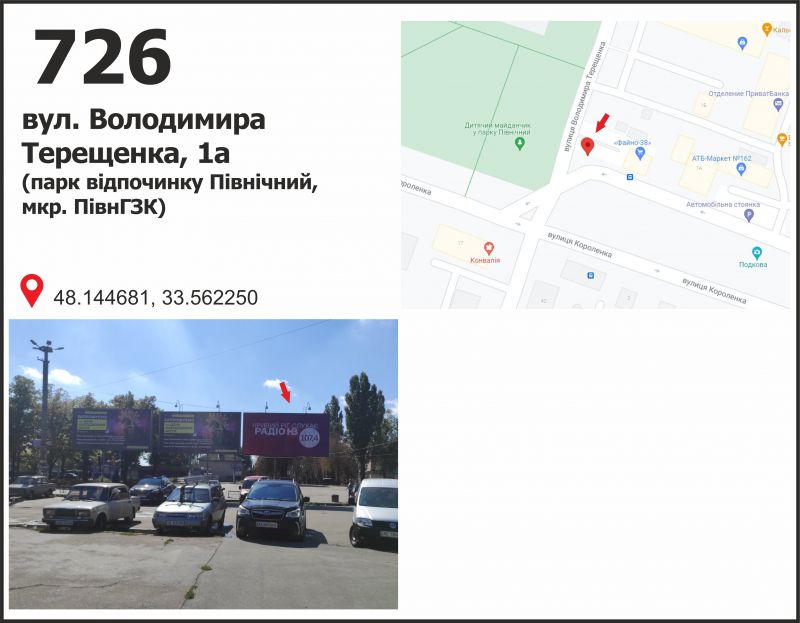 Білборд/Щит ул. Владимира Терещенко (Федоренко), 1а (ТК "СевГОК", парк отдыха), Кривий Ріг