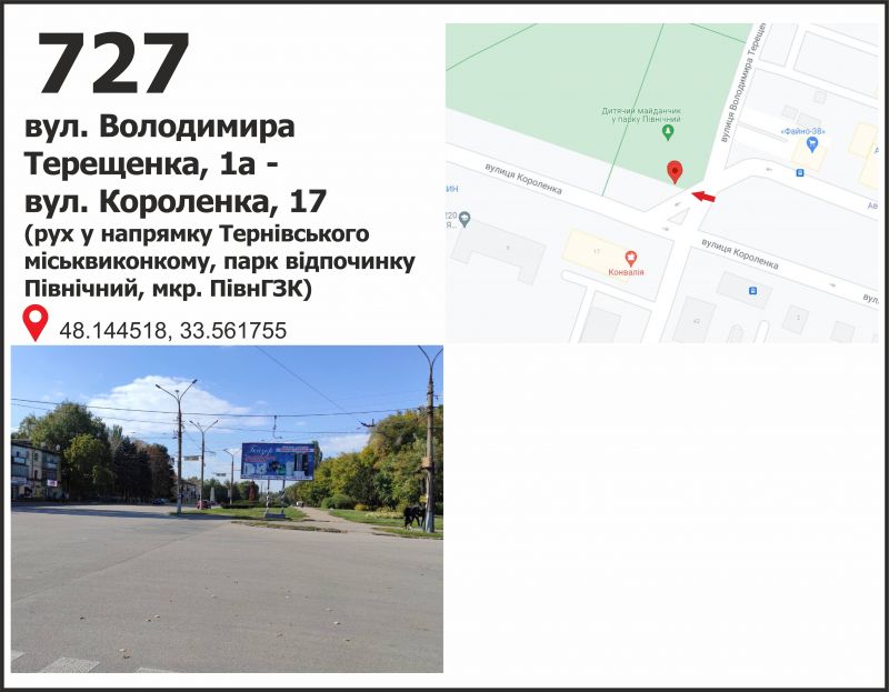 Білборд/Щит ул. Владимира Терещенко (Федоренко) - ул.Короленко, 17, дв-е к Терновскому районному исполкому, Кривий Ріг