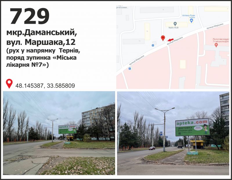 Білборд/Щит вул. Маршака, 12 (зуп."7 Міська лікарня"), рух у напрямку пл. Праці, Кривий Ріг