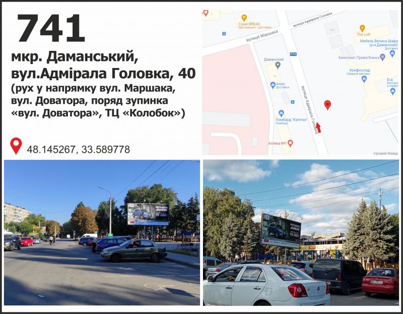 Білборд/Щит ул. Адмирала Головко, 40, мкр. Даманский (ТЦ "Колобок"), Кривий Ріг