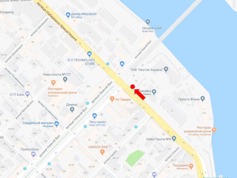 Набережно-Хрещатицька вул.- вул. Верхній Вал, на світлофорі, з центру